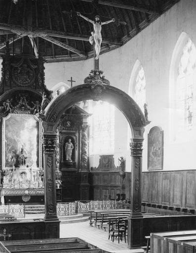 entrée du choeur ; nef, mur sud en hauteur (Vierge) ; chapelle nord, en hauteur (saint Jean)