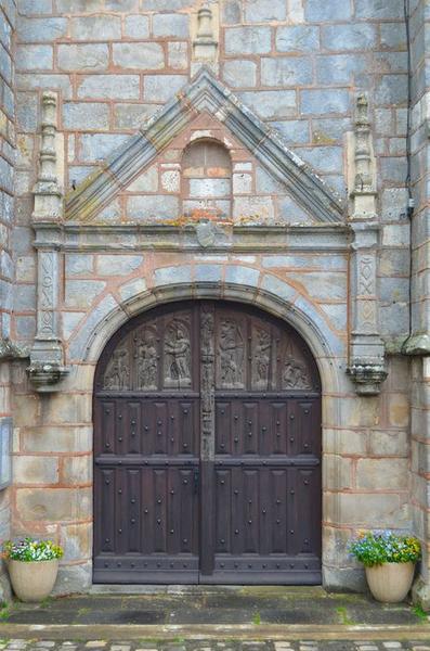 Registre supérieur du vantail gauche : saint Roch de Montpellier entre son chien et l'ange ; registre supérieur du vantail droit : saint Sébastien entre deux archers bourreaux tendant leur arc ; à la partie supérieure du trumeau, un prêtre tient le ciboire et présente l'hostie.