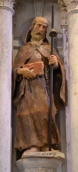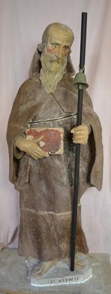 3 statues : saint Jacques ou Jean-Baptiste bénissant, saint Antoine ermite, saint Fiacre