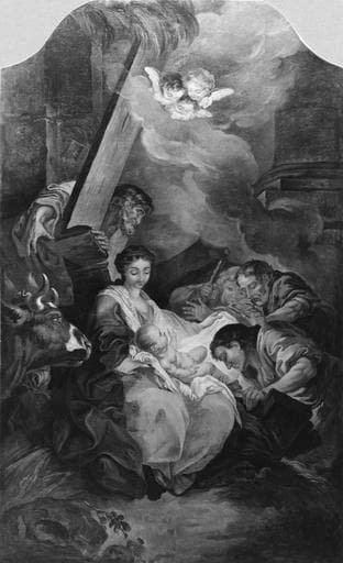 3 tableaux et leurs cadres (tableau d'autel) : l'Adoration des bergers, saint Jean-Baptiste, saint Eloi de Noyon