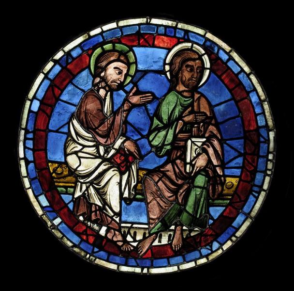 POP | Plateforme ouverte du patrimoineverrière (rose) : le Jugement dernier, Christ juge (le), la Résurrection des morts, apôtres (les), élus et damnés (baie 143)
