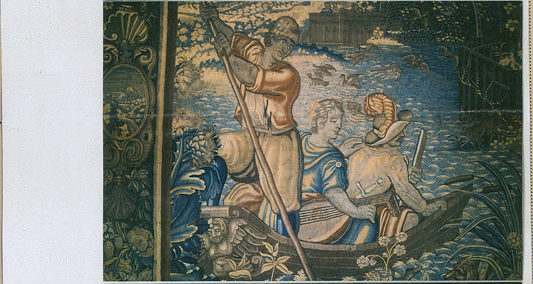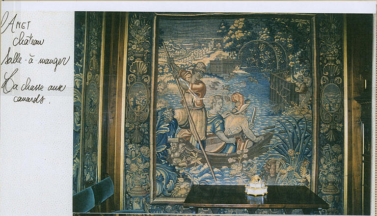 quatre pièces murales des chasses : chasse au faucon, chasse à l'ours, chasse aux canards, chasse au cerf