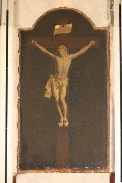 tableau en trompe-l'oeil et son cadre : Christ en croix