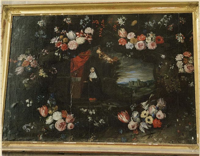 religieuse : prière (sainte Elisabeth de Hongrie : ?) ; guirlande : fleur