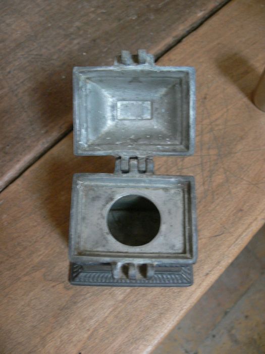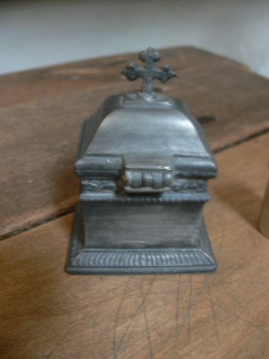 Coffret aux saintes huiles en étain pourvu d'un seul emplacement.