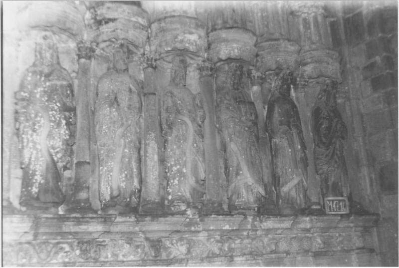 A l'intérieur du porche latéral, ces statues reposent sur un soubassement étalant des grotesques, hommes et femmes.