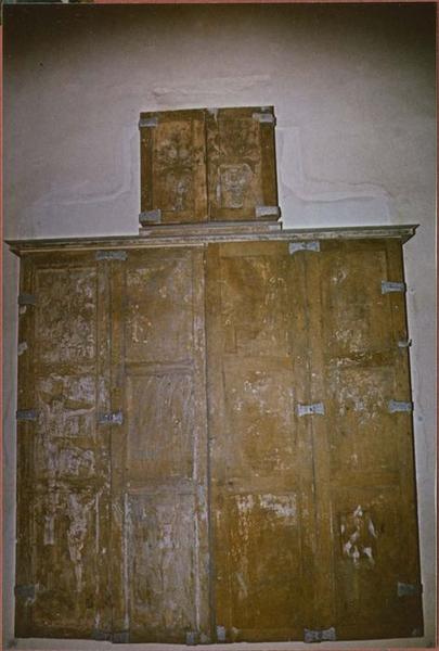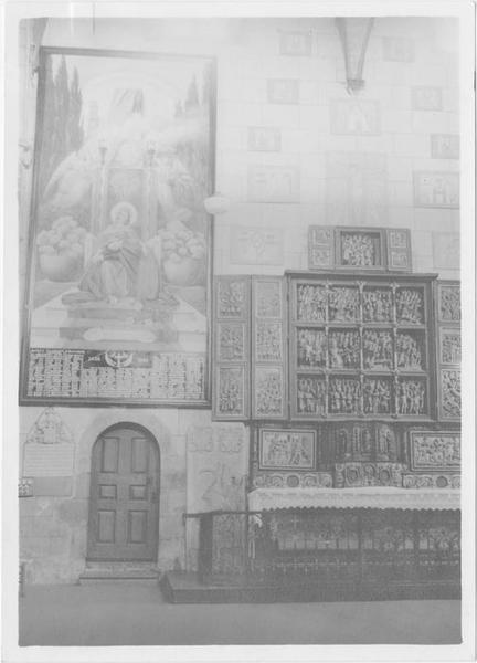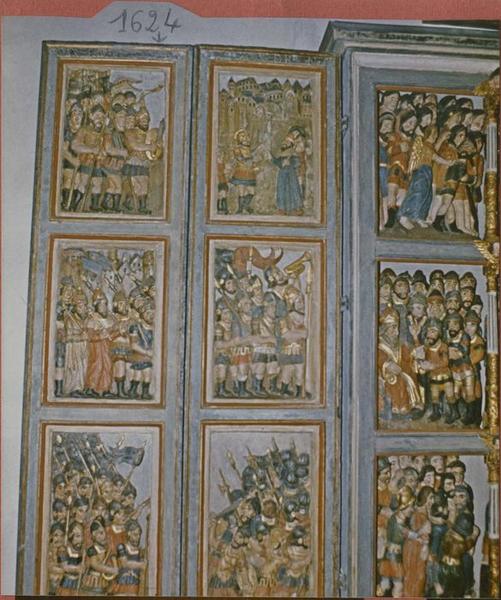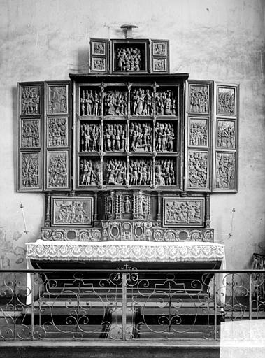 Ce retable est formé d'une grande armoire à volets dit des dix mille martyrs, en tout vingt-neuf panneaux en haut et bas-reliefs retraçant les supplices des 10 000 martyrs du Mont Ararat.