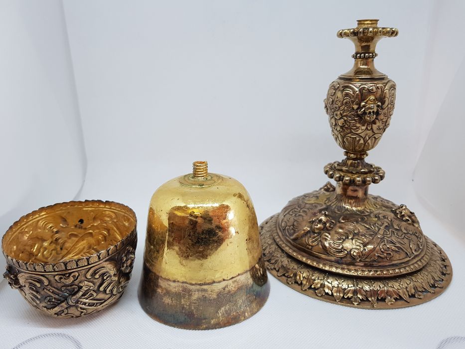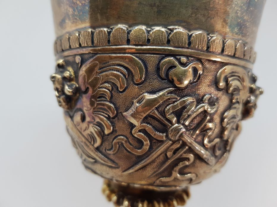 Poinçon (sous la coupe) : V couronné. Poinçon de maître (sur la patène).