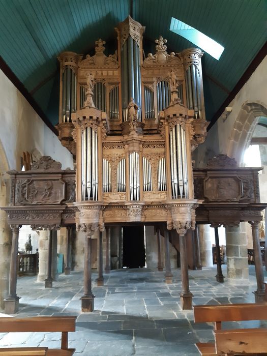 Exécuté vers 1675, l'orgue est remanié à plusieurs reprises au 19e siècle, en particulier par Yves Le Roux, de Quimper, dans les années 1820-1830, et par Loiselot en 1850. Au début du 20e siècle, l'instrument, muet, est à nouveau remanié par P.M. Koenig de Paris et subit de nombreuses dégradations et vols de tuyaux jusqu'en 1983 où le démontage et l'inventaire de qui subsistait est entrepris. A cette date, environ 40 % de matériel ancien est dénombré.
