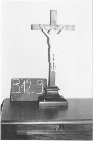 Pied rectangulaire en bois. Croix latine à branches de section rectangulaire. Crucifix en ivoire.