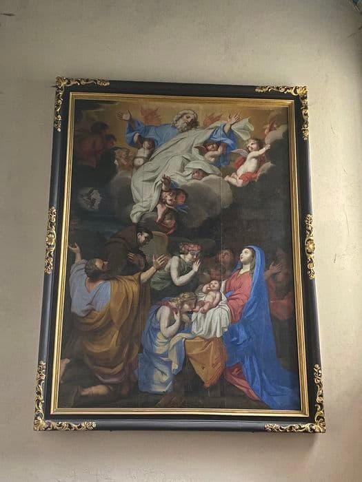 toile (support) : peinture à l'huile ; bois : taillé, peint, doré