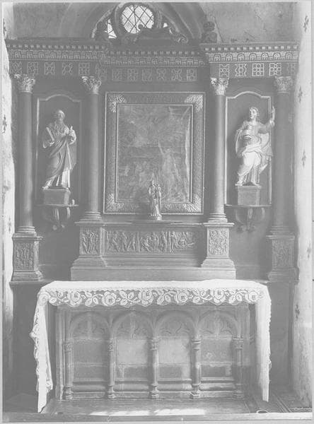retable, 3 bas-reliefs : Saint Sébastien percé de flèches, Martyr tenaillé, Saint Jean dans la chaudière
