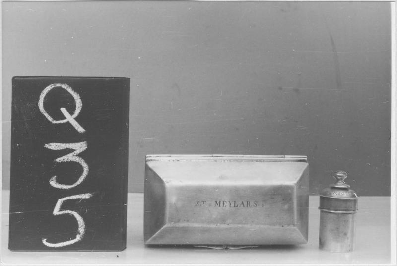 Inscription (sur le couvercle) : ST MEYLARS. Trois poinçons dont un aux initiales IIV.