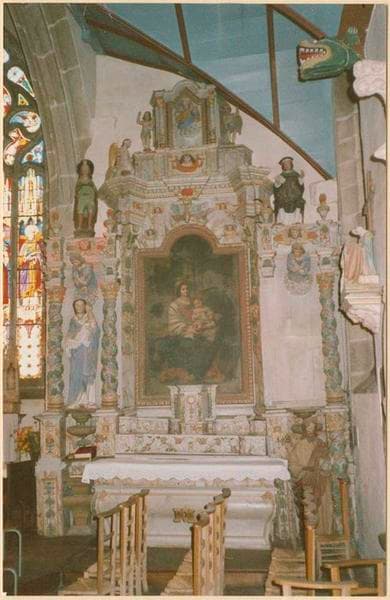 autel et retable du Rosaire, statues : Vierge à l'Enfant, Saint Roch, Saint Yves, tableau : Vierge à l'Enfant