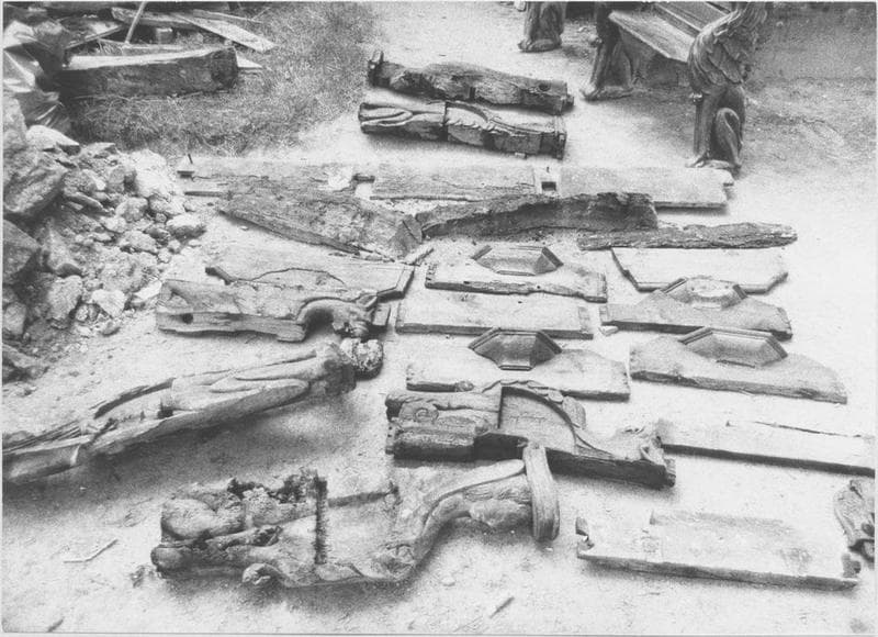 pierre : taillé ; bois : taillé