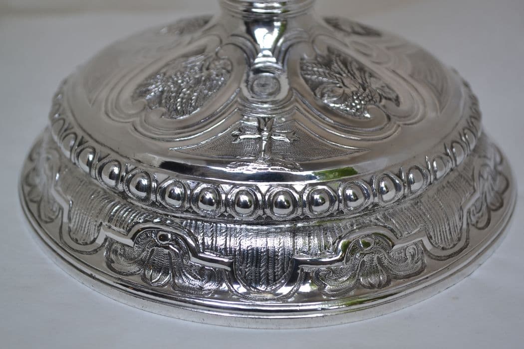 Pied arrondi et haute tige. La coupe dorée est postérieure.