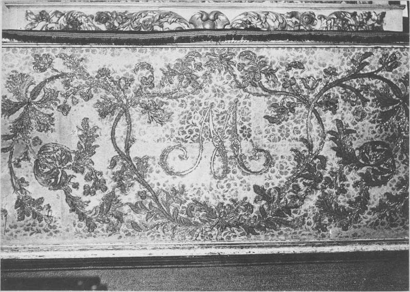 bois : taillé, polychrome ; soie : brodé ; fil métal ; perle