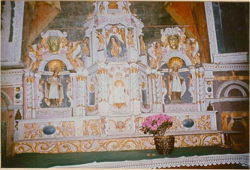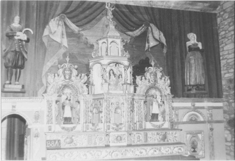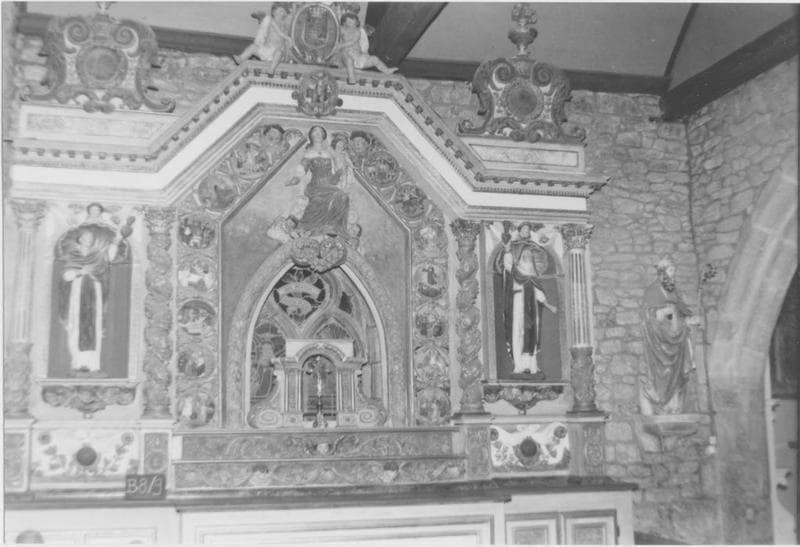 Le retable de gauche est le retable du Rosaire, et comporte les statues de saint Dominique et de sainte Catherine de Sienne, de part et d'autre de la statue de la Vierge à l'Enfant, ainsi que des médaillons. Le retable de droite comporte les statues de saint Isidore et de sainte Zite, et, au centre, un panneau peint.