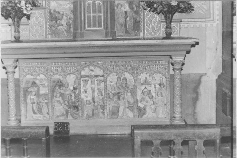Orné de sept bas-reliefs représentant la Nativité, l'Adoration des mages, la Crucifixion, la Présentation au temple, l'Annonciation, l'Annonce aux bergers, et la Visitation.