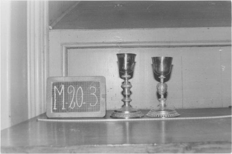Pied rond à bordure ajourée avec feuilles d'acanthe en frise. Dessus du pied en doucine. Collerette à perles, avec dessous une bague, terrasse feuillagée. Noeud ovoïde, gorge avec bague, collerette à perle. Coupe évasée unie.