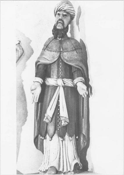 Groupe de 5 statues représentant le Christ, Ponce Pilate, Hérode et deux valets.