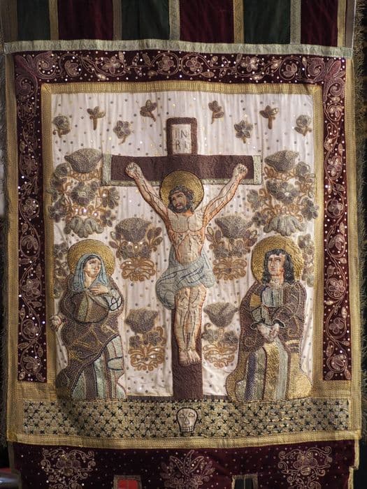 POP | Plateforme ouverte du patrimoinebannière de procession : Saint Pierre, Christ en croix entre la Vierge et saint Jean