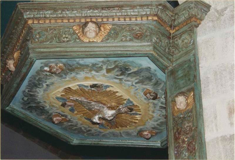 Bois peint et médaillons polychromes. Apothème de la cuve : 80 cm.