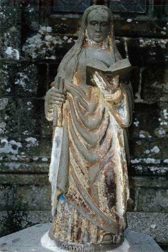 Statue en Kersanton (pierre issue d'une carrière du Finistère) avec traces de polychromie.