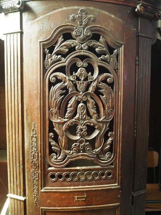 Forme semi-circulaire sans couronnement. Décors à quatre pilastres ioniques, frise de pampres de vigne. Porte décorée de feuillages entrelacés.