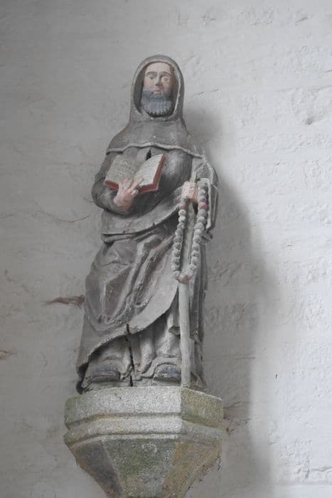 saint Herbot ; en pied ; portant ; livre ; chapelet