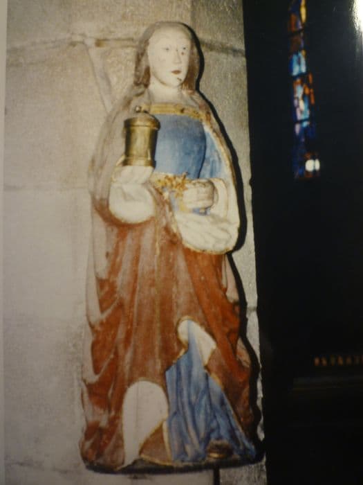 Sainte Madeleine porte le pot d'onguent de la main gauche.