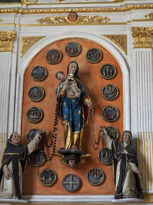 POP | Plateforme ouverte du patrimoineautel et retable du Rosaire ; 3 statues : la Vierge à l'Enfant, Sainte Catherine, Saint Dominique