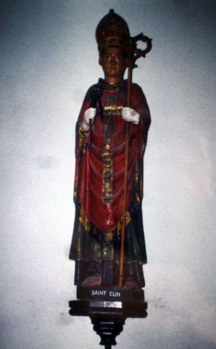 Saint Eloi en tenue d'évêque, tient la tenaille de la main droite et la crosse de la main gauche.