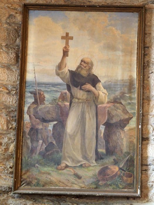 saint Tugdual ; religieux ; bord de mer ; autel ; croix ; serpe ; arme