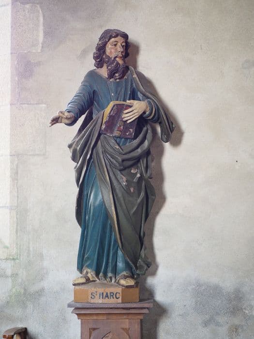 Saint Marc en pied soutient le livre ouvert de la main gauche.