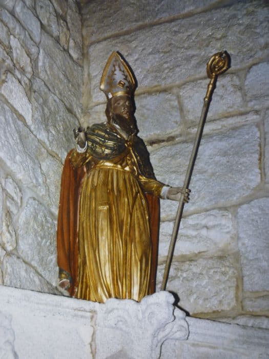 Saint Tugdual en tenue d'évêque tient la crosse de la main gauche.