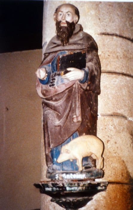 Saint Antoine accompagné de son cochon, porte le livre de la main gauche.