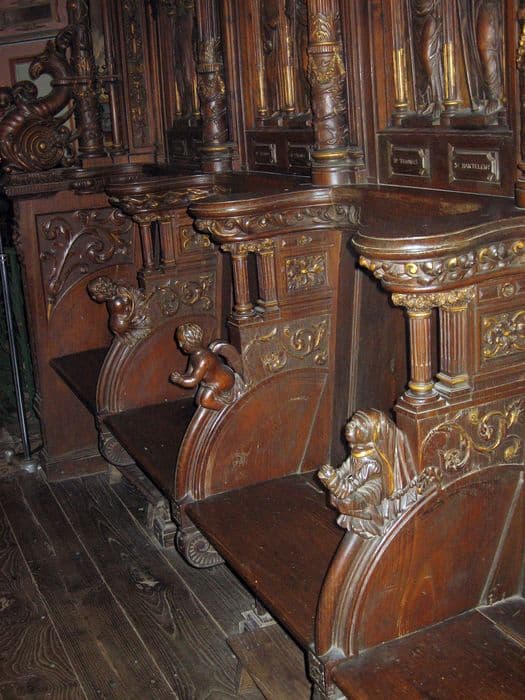 autel ; lambris de revêtement ; stalle ; niche ; peinture ; statue