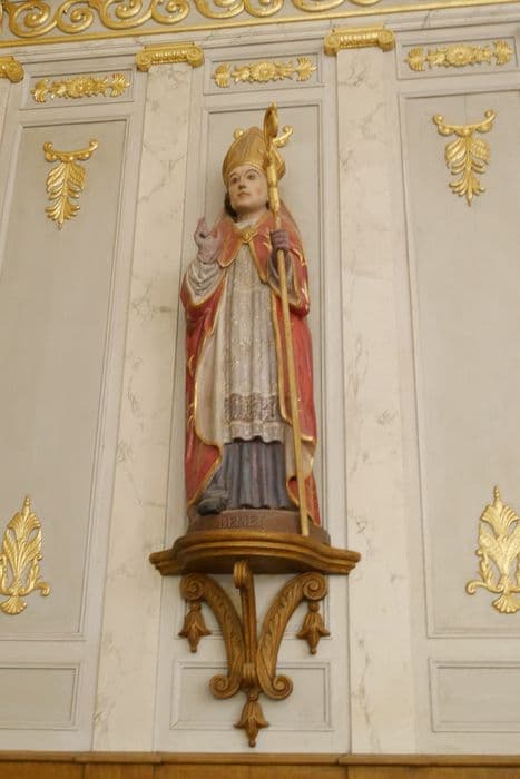 Saint Démet, évêque, bénit de la main droite et tient la crosse de la main gauche.