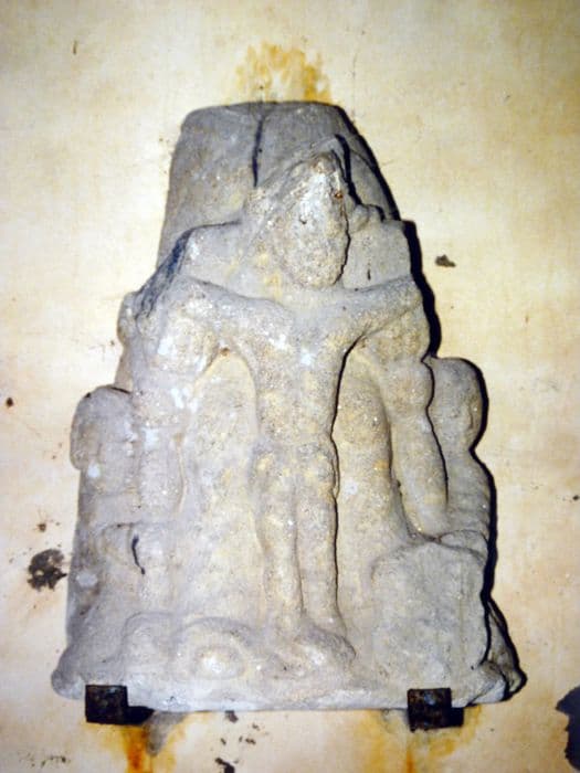 statue : Christ en croix accosté à deux anges (Trinité ?)