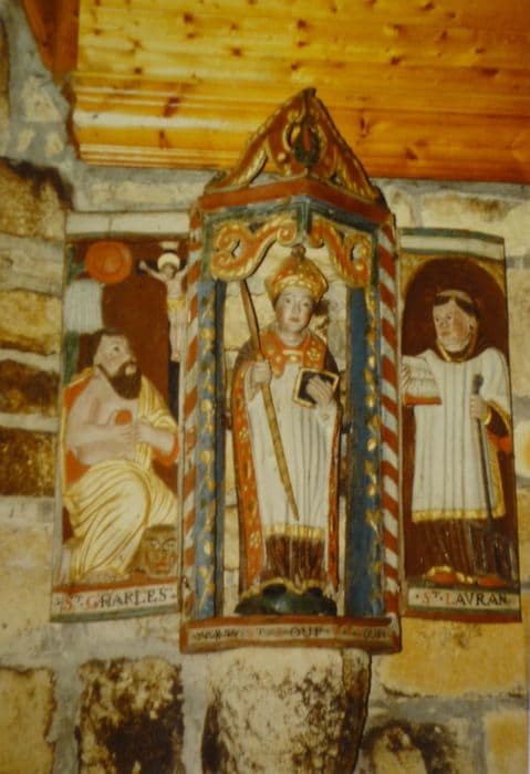 statue et sa niche : Saint Loup dans une niche à volets avec bas-reliefs de saint Jérôme et saint Laurent