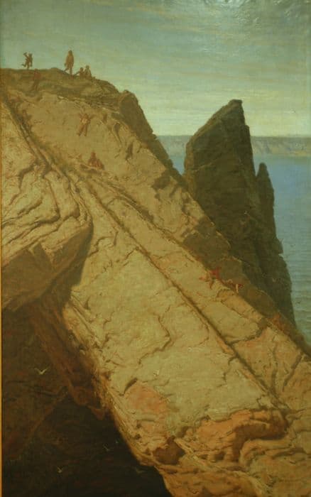 tableau : Enfants jouant sur une falaise en bord de mer