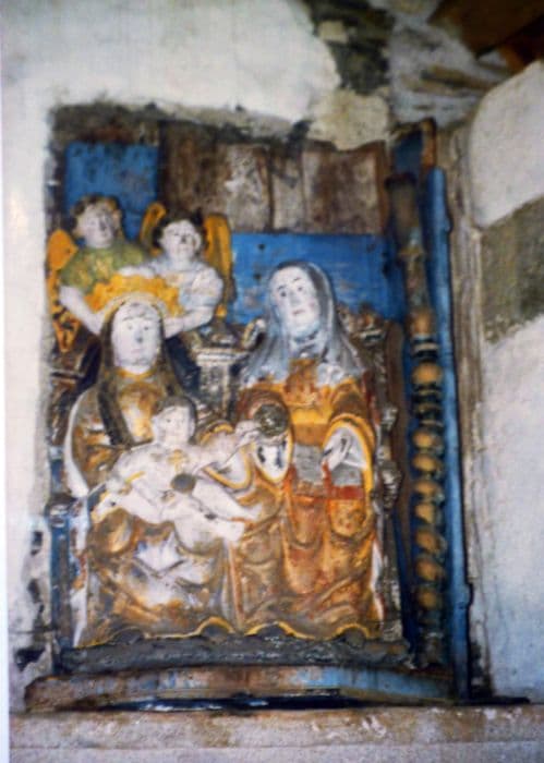 groupe sculpté et niche : Sainte Anne et Marie assises, la Vierge tenant l'Enfant, deux anges la couronnent