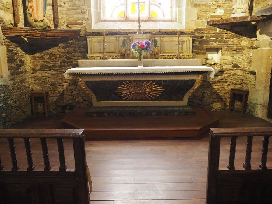 Contre le mur est du chevet de la chapelle.