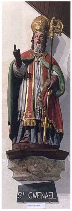 saint Guénolé ; évêque ; en pied ; portant ; crosse ; bénédiction