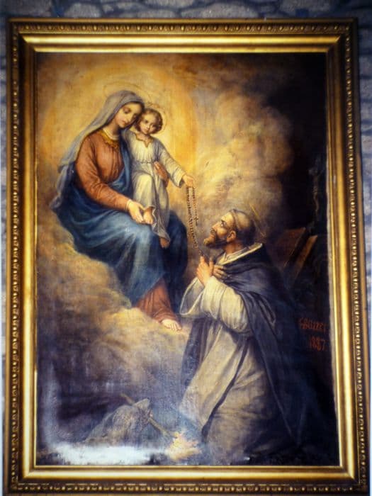 rosaire ; don ; Vierge à l'Enfant ; nuée ; saint Dominique de Guzman