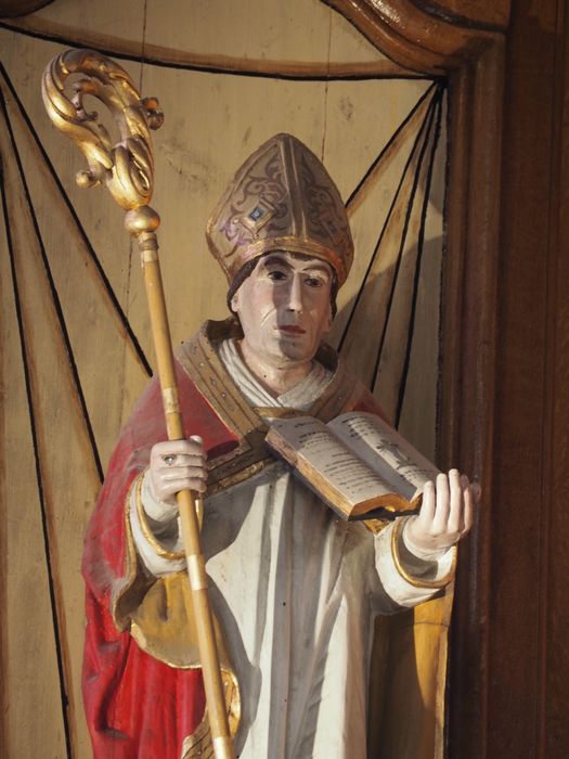 saint identifié ; en pied ; évêque ; portant ; crosse ; livre
