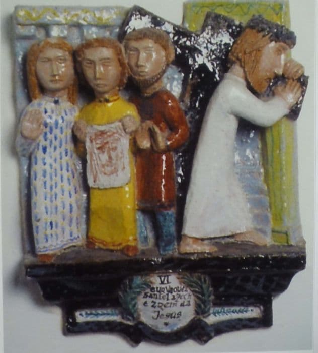 14 stations. Bas-relief en terre chamottée émaillée.