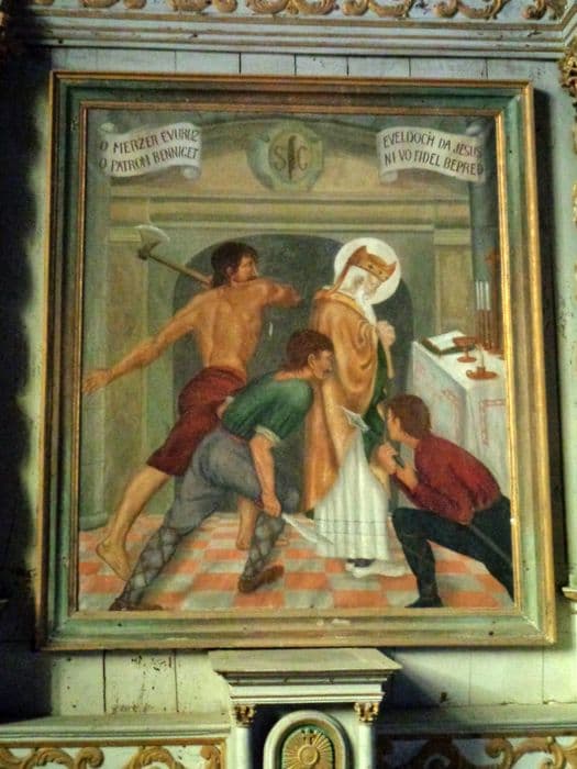 POP | Plateforme ouverte du patrimoineautel ; retable ; tableau : Le Martyre de saint Cadou (?) ; statue : Saint en dalmatique