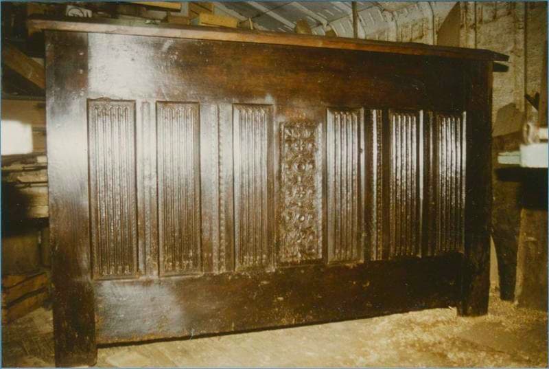 Côté à un panneau. Façade à six panneaux à table saillante, montants intermédiaire à bords moulurés.